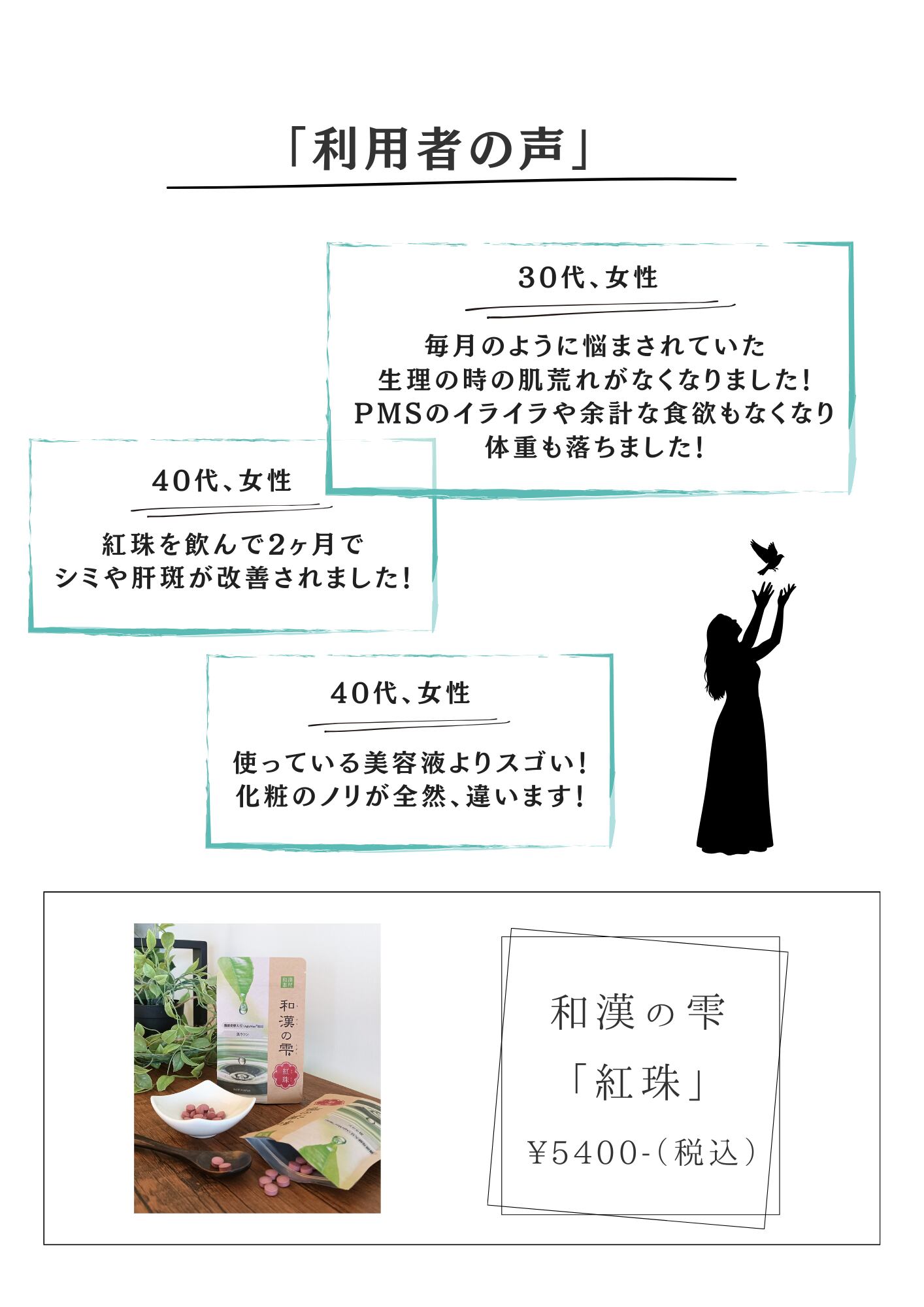 ▶美容や美肌、ダイエットや体型維持、子宝や女性のゆらぎなど、ご家族でシェアしながら幅広くお使いいただけます。