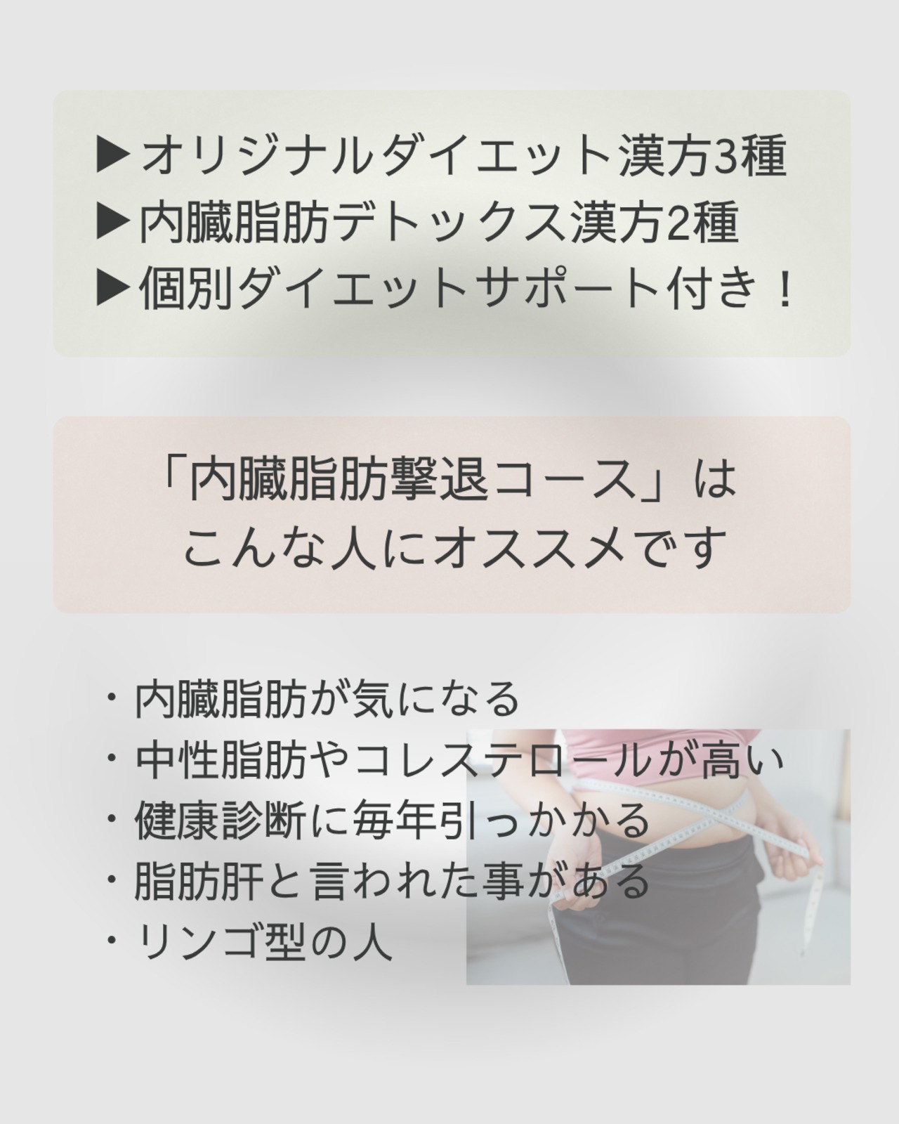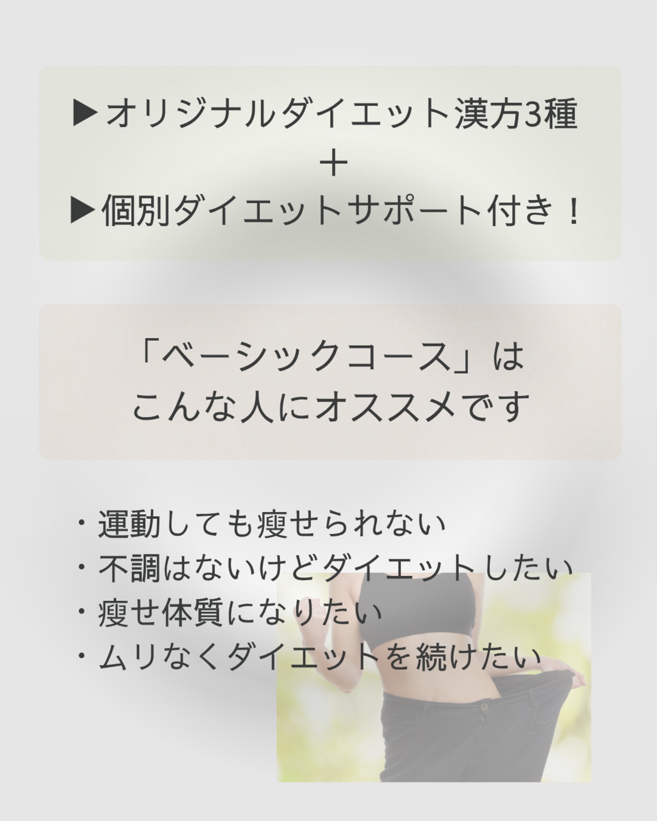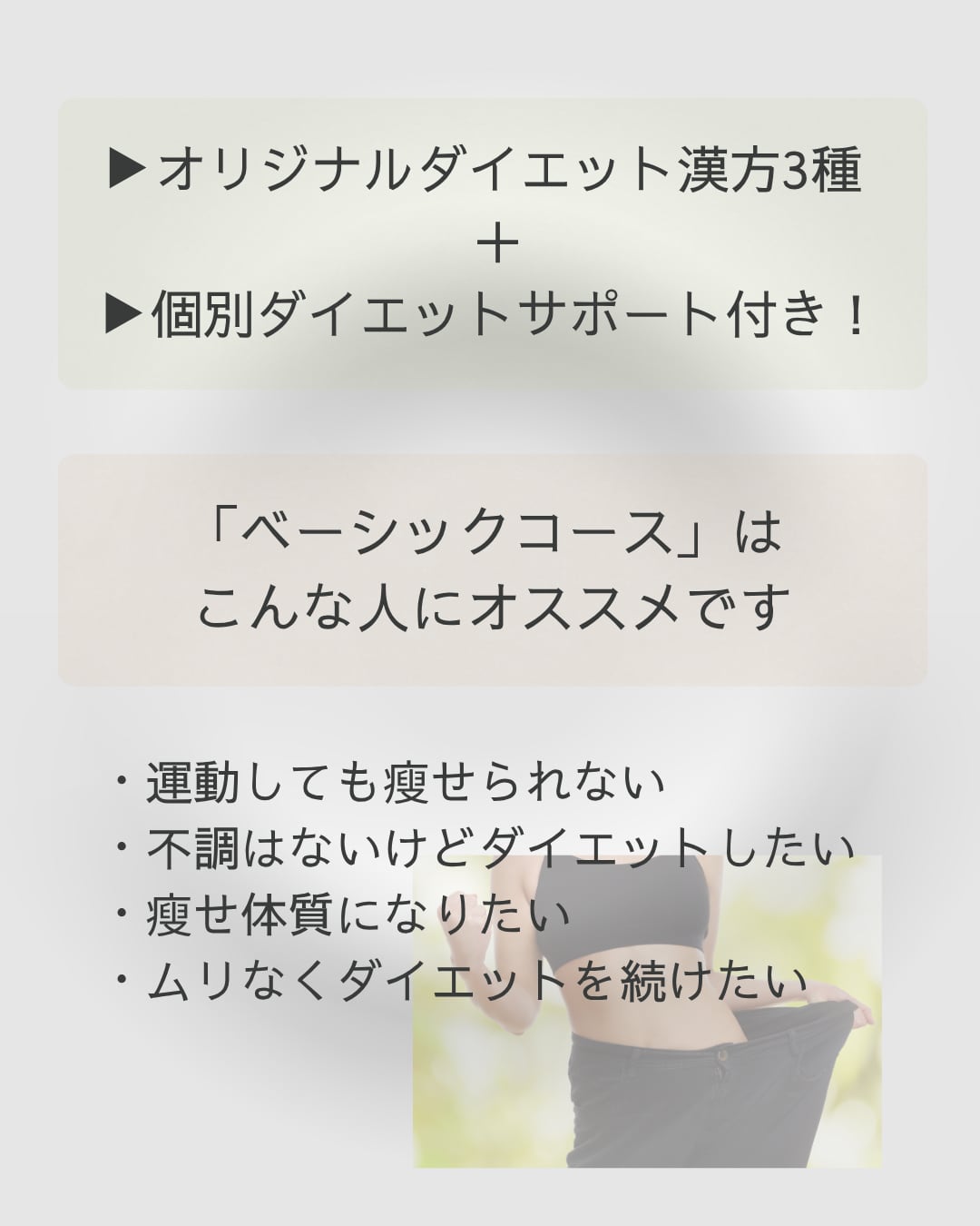体質改善を含むマンツーマンのダイエットサポートをご希望の方にお勧めです。